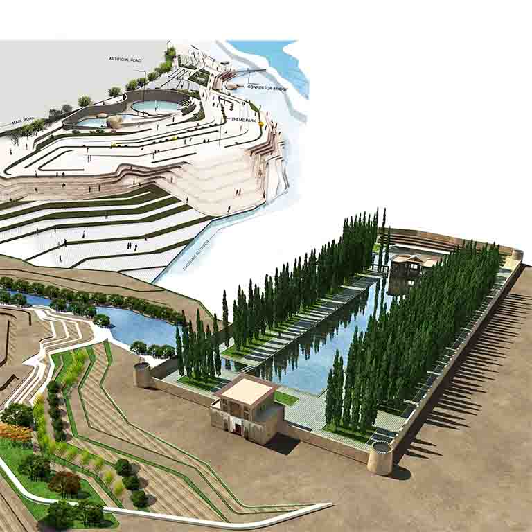 As a demonstrative of a fundamental connection among pristine nature, existence of human power in organizing space and significant role of water and green landscape to emphatically clarify ecosystem, “Historic Garden” presents an architectural concept , which carries the site has been settle by the garden.